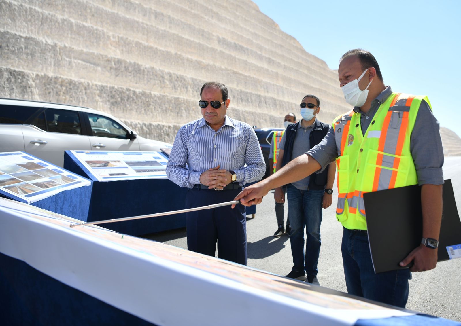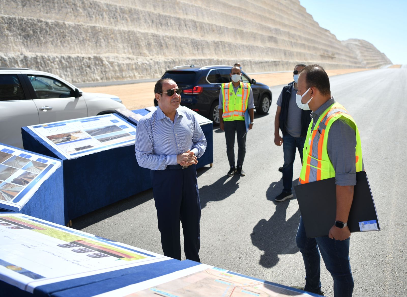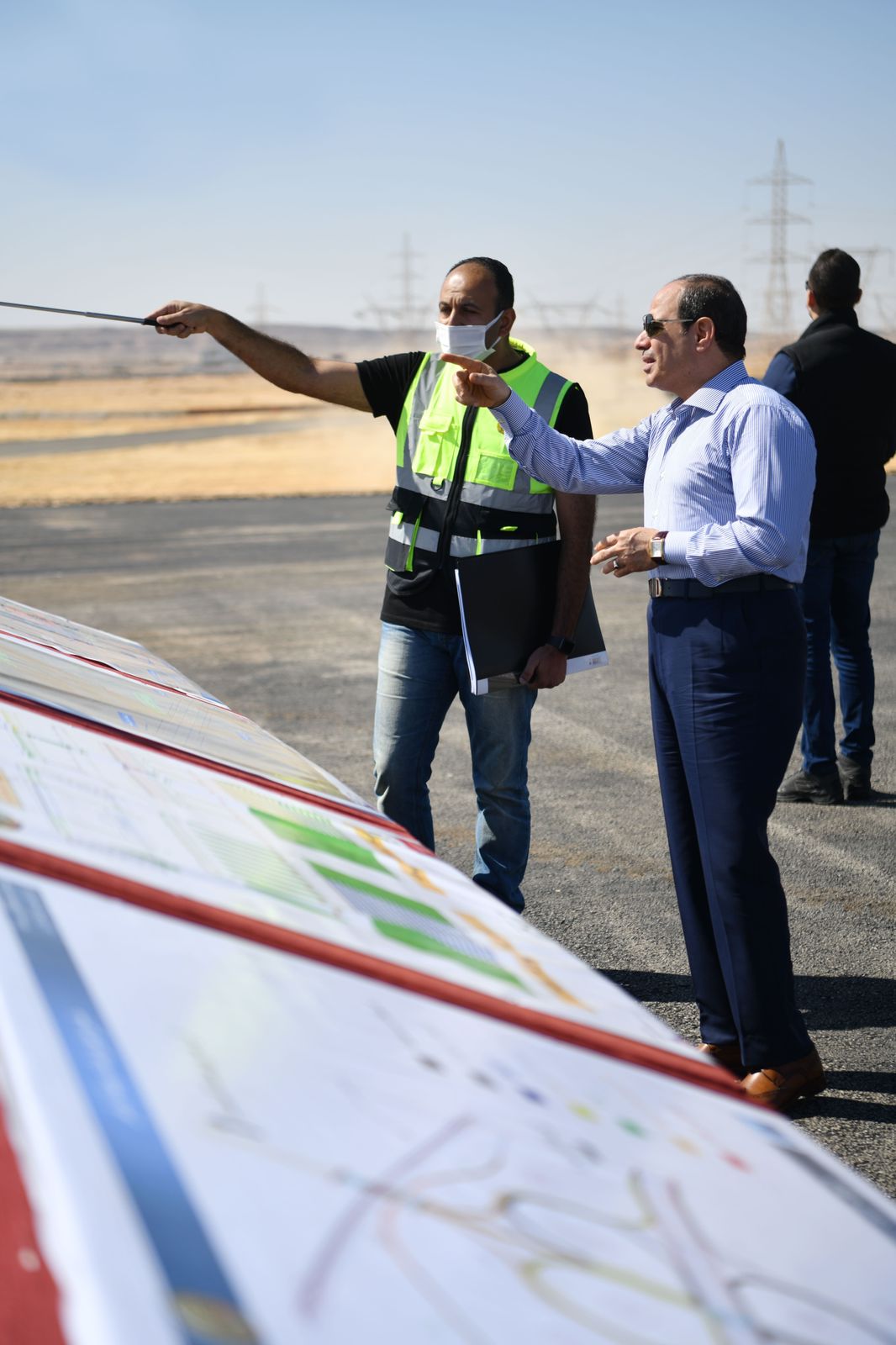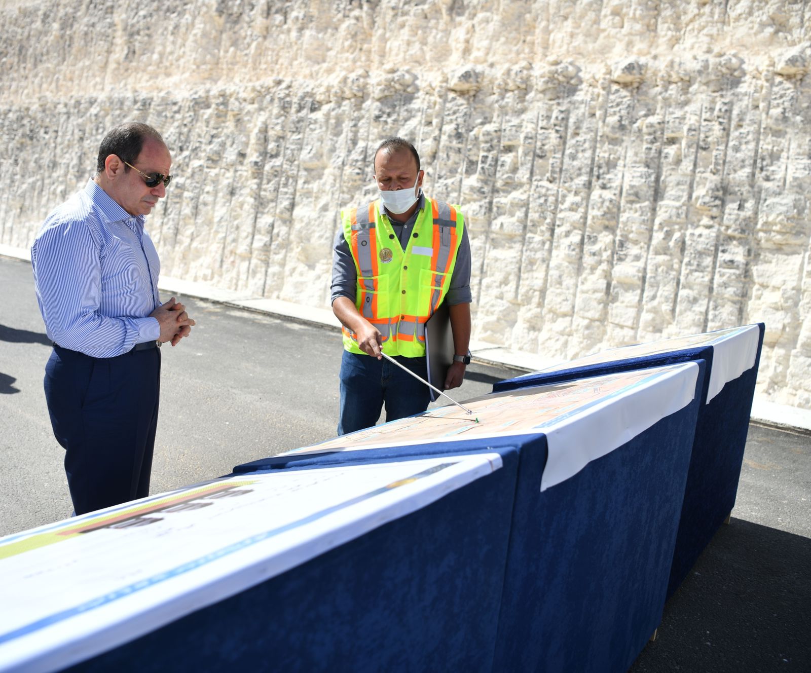 السيسي يتفقد العمل بامتداد طريقي وصلة أم القمر وخدمة المحاجر