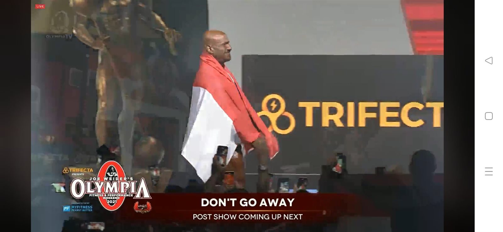 احتفل بطلنا المصري بيج رامي بعلم مصر على مسرح مستر أولمبيا 2021، وذلك عقب فوزه بالجائزة بشكل رسمي منذ لحظات وسط أجواء عارمة بالسعادة والفخر من جانب السبيعي بتشريف اسم بلاده في بطولة استثنائية للعام الثاني على التوالي.