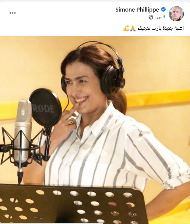 أعلنت النجمة سيمون استعدادها لطرح أغنية جديدة، خلال الفترة المقبلة، إذ شاركت جمهورها بصورة لها من داخل أحد الاستوديوهات.