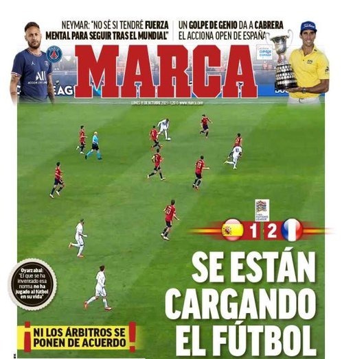شنت صحيفة ماركا الإسبانية، هجومًا على حكم مباراة منتخب فرنسا أمام نظيره الإسباني، وذلك في صفحة الغلاف، حيث قالت الصحيفة في الغلاف: تخيّل تتكرر بنهائي كأس عالم ويفوز من خلالها منتخب على حساب آخر.