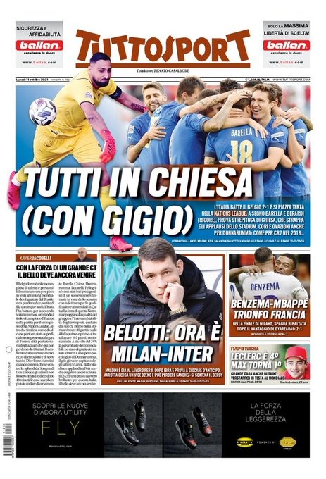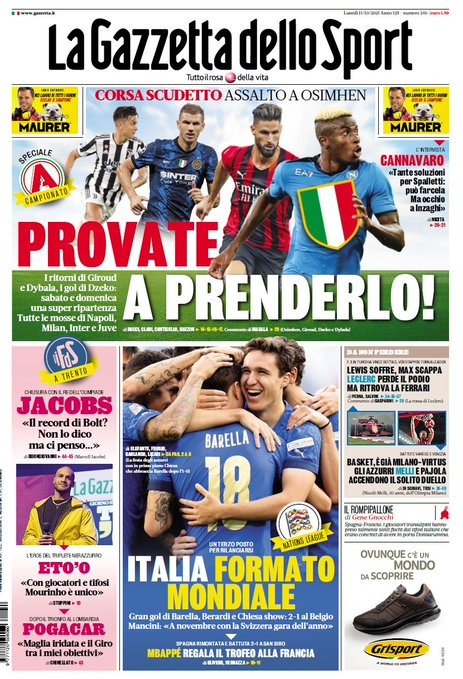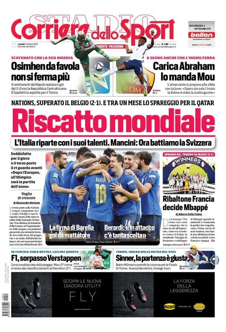 سلطت صحيفة لا جازيتا ديللو سبورت الإيطالية الضوء على فوز المنتخب الإيطالي بالمركز الثالث في دوري الأمم الأوروبية، وذلك بعنوان إيطاليا في وضع كأس العالم.