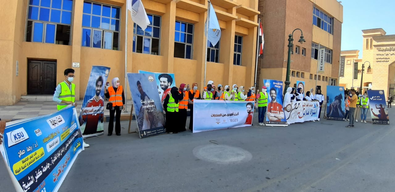 كما تم تنفيذ حملة التوعية بمخاطر الإدمان والتعاطي بمناسبة استقبال العام الدراسي الجديد 2021/2022م، وذلك بحضور رئيس وحدة وعلاج الإدمان والتعاطي بكفر الشيخ الدكتور سلام العربي، حيث شرح فريق الصندوق أضرار التدخين والإدمان على الصحة وأضرارها على المجتمع اقتصاديا وأنه يستنزف من موارد الدولة المالية والصحية لطلاب وطالبات الجامعة.
