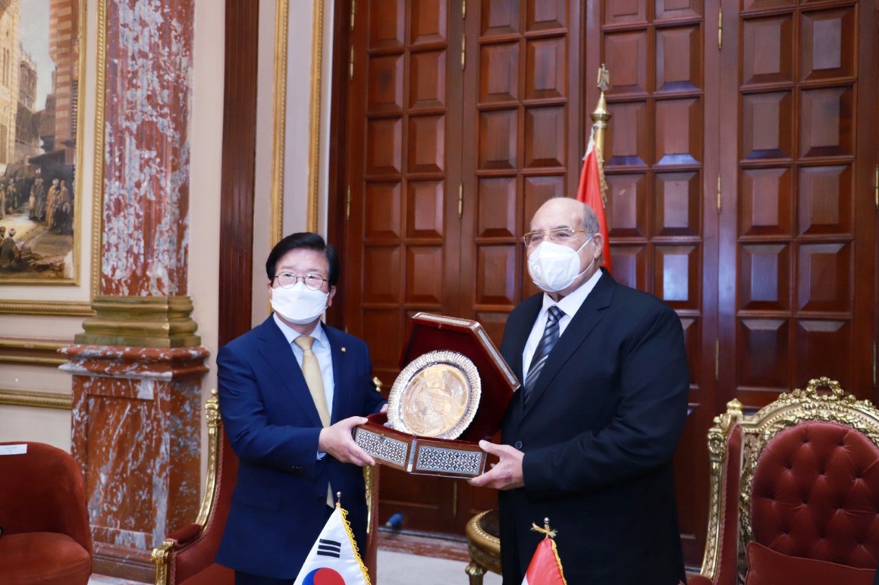 استقبل المستشار عبدالوهاب عبدالرازق، رئيس مجلس الشيوخ، اليوم، بيونج سيوج بارك، رئيس الجمعية الوطنية لجمهورية كوريا الجنوبية (رئيس البرلمان الكوري) والوفد المرافق له وبحضور السفير الكوري بالقاهرة جين روك هونج، لمناقشة سُبل تعزيز علاقات التعاون البرلماني بين البلدين.