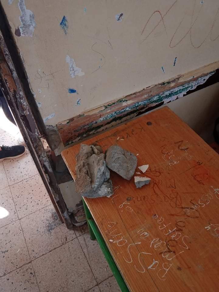إصابة طالب بجروح إثر سقوط قطع خرسانية عليه بـ مدرسة بالوظة في بئر العبد بسيناء | صور