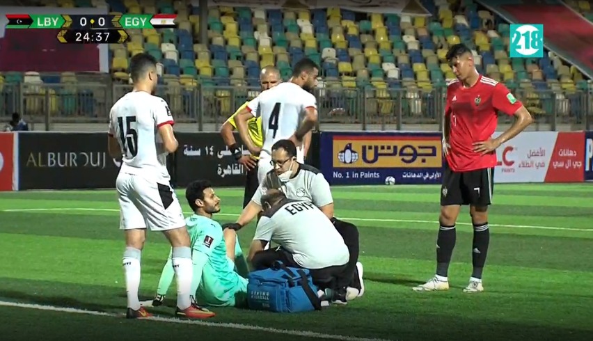 وتعرض محمد الشناوي حارس مرمى منتخب مصر للإصابة في العضلة الخلفية الدقيقة 25 من زمن الشوط الأول ونزل بدلا منه محمد أبو جبل.