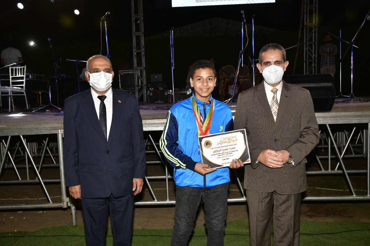 واخْتُتِمَ الحفل بتكريم المحافظ للفرق الرياضية والشبابية الفردية والجماعية الفائزة بالمراكز الأولى على مستوى الجمهورية في الألعاب والأنشطة المختلفة التي نظمتها وزارة الشباب والرياضة.