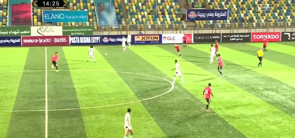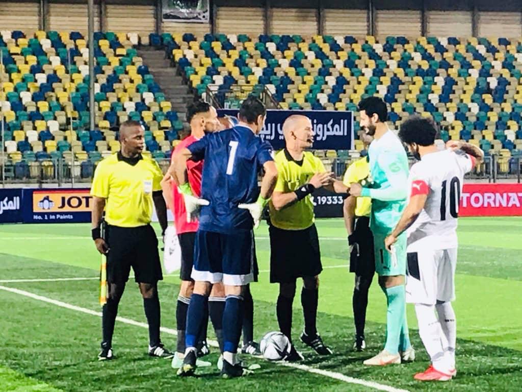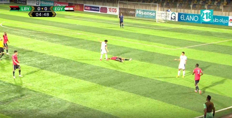 وشهدت الدقيقة الخامسة، سقوط خطير لسند الورفلي لاعب منتخب ليبيا على أرضية الملعب، بعد اصطدام بمصطفى محمد مهاجم منتخبنا الوطني، قبل أن يفيق بعد تلقي العلاج من الجهازين الطبيين المصري والليبي.
