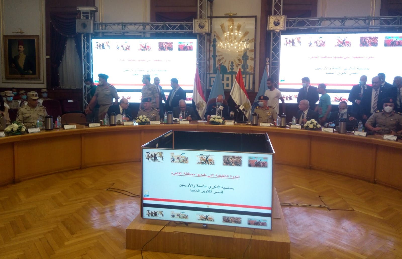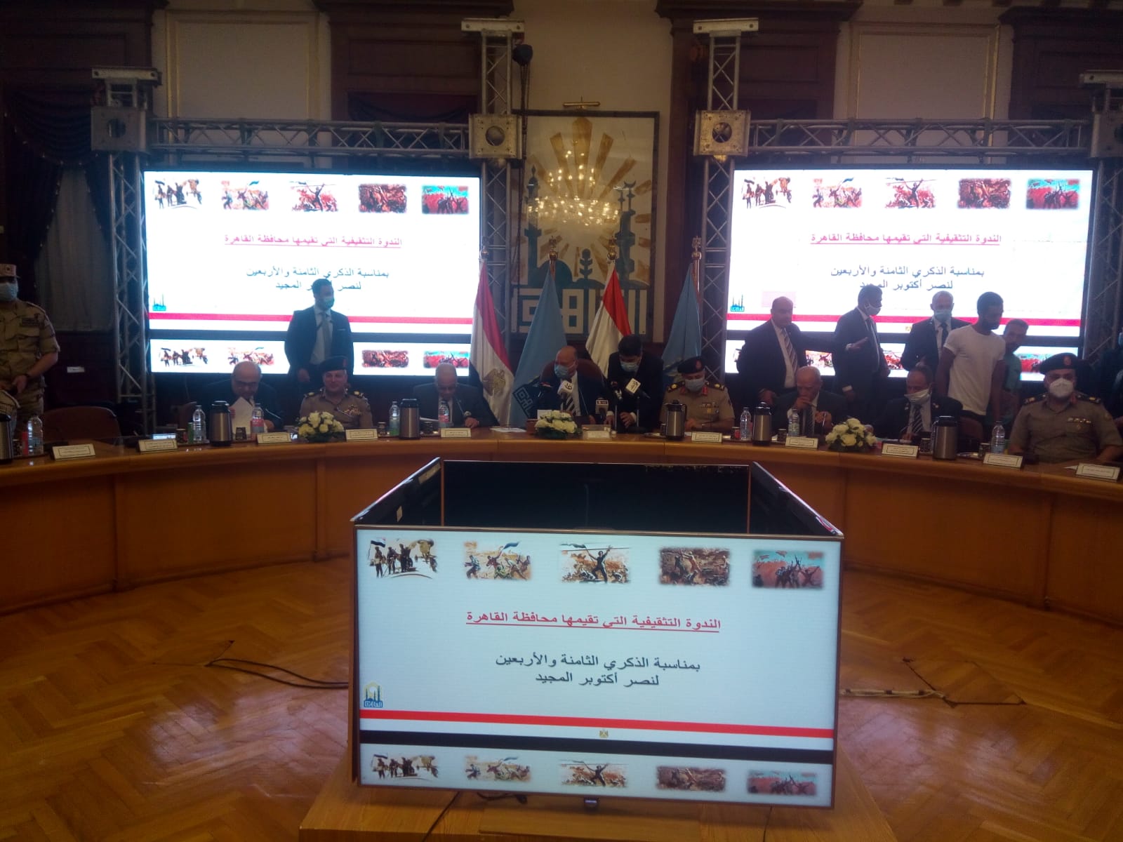 عقدت محافظة القاهرة صباح اليوم، ندوة تثقيفية تحت عنوان: رجال صنعوا النصر، تحت رعاية وبحضور اللواء خالد عبد العال محافظ القاهرة واللواء أ.ح عماد زكي قائد قوات الدفاع الشعبي والعسكري واللواء أ.ح مصطفى عميرة مدير جمعية المحاربين القدماء وضحايا الحرب، في إطارات احتفالات نصر أكتوبر.