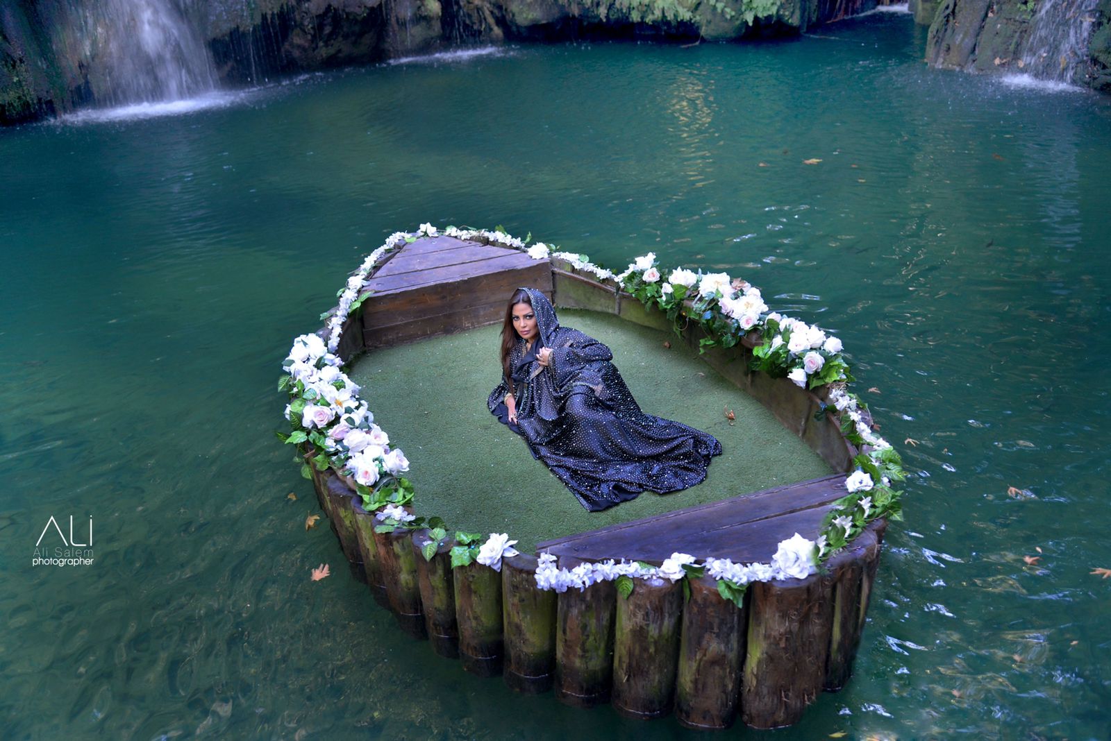 وتألقت سمر بإطلالة جذابة وملابس أنيقة، وذلك وسط البحر والأشجار والخضرة، حيث ظهرت بجلباب كحلي به فصوص لامعة، ووضعت غطاء على رأسها، وأسدلت شعرها على كتفها، وكانت تجلس بقارب من الخشب مزين بالورود، وسط منظر بديع بالشلالات الزرقاء في جبل لبنان.
