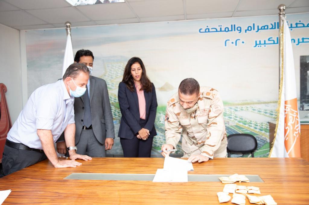 عقد اللواء عاطف مفتاح، المشرف العام على المتحف المصري الكبير والمنطقة المحيطة، اجتماعًا لتسليم تحالف حسن علام، الفائز بتقديم وتشغيل خدمات الزائرين بالمتحف المصري الكبير، أولى المناطق الاستثمارية داخل محيط المتحف المصري الكبير، وهي المنطقة المُطلة على أهرام الجيزة، وذلك للبدء في تنفيذ التجهيزات اللازمة للتشغيل، وسوف يتم تباعًا تسليم المناطق الاستثمارية الثانية والثالثة الموجودة بمحيط المتحف خلال الأيام المقبلة.