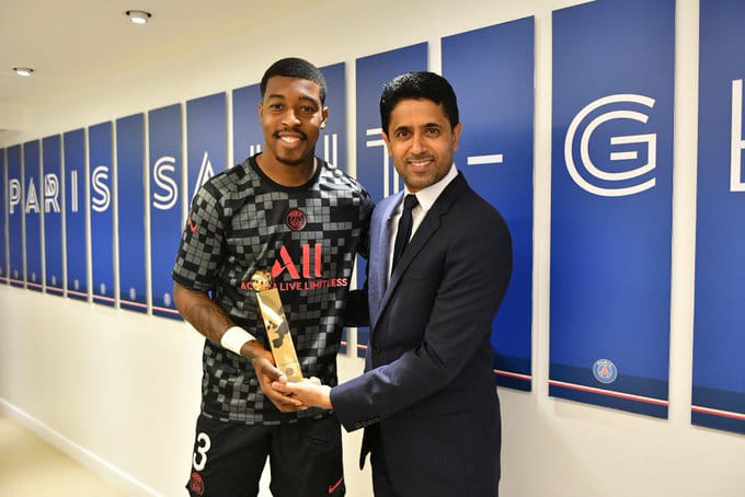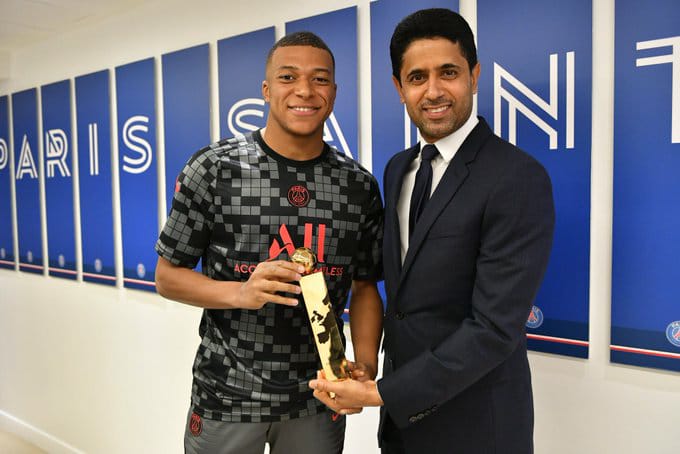 حرص ناصر الخليفي رئيس نادي باريس سان جيرمان الفرنسي على تكريم الثنائي كيليان مبابي وبريسنيل كيمبيمبي لاعبي الفريق الأول لكرة القدم ومنتخب فرنسا، وذلك نظرًا لفوزهما رفقة منتخب بلادهما بدوري الأمم الأوروبية.