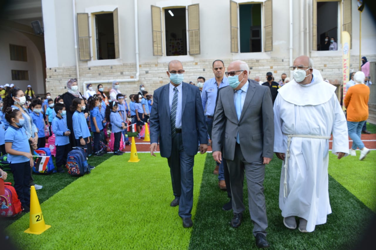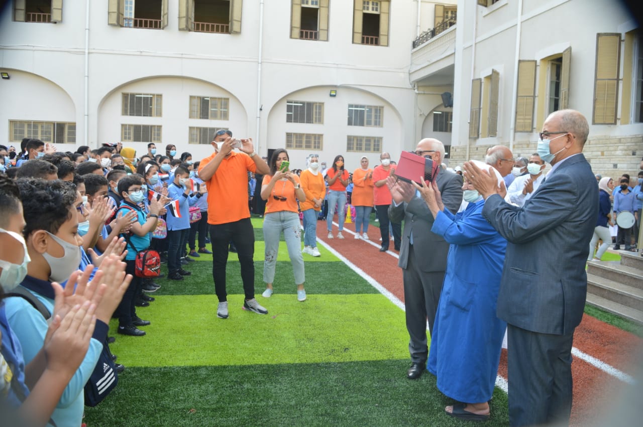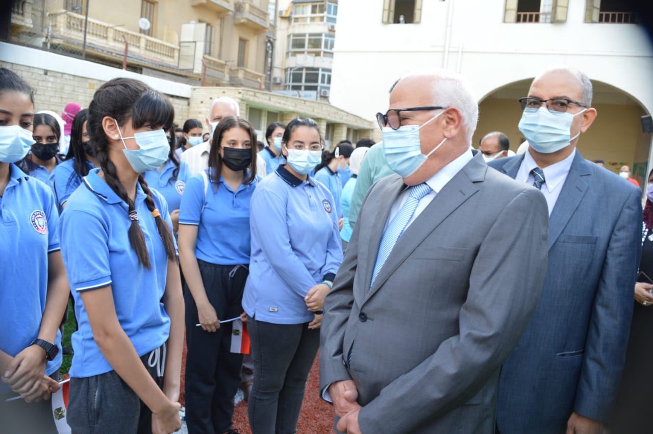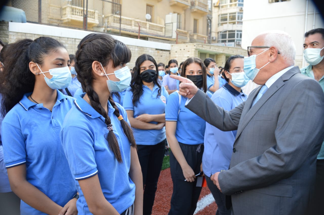 محافظ بورسعيد يشارك الطلاب طابور الصباح ويؤكد: لن يسمح بالغياب | صور