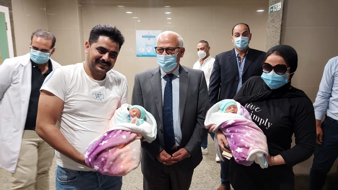 وقدم المحافظ التهاني للزوجين بطفليهما التوأم، مشددًا على توفير الخدمة الطبية اللازمة لهما، وفحص الطفلين بالشكل اللازم، للاطمئنان على صحتهما وسلامتهما.