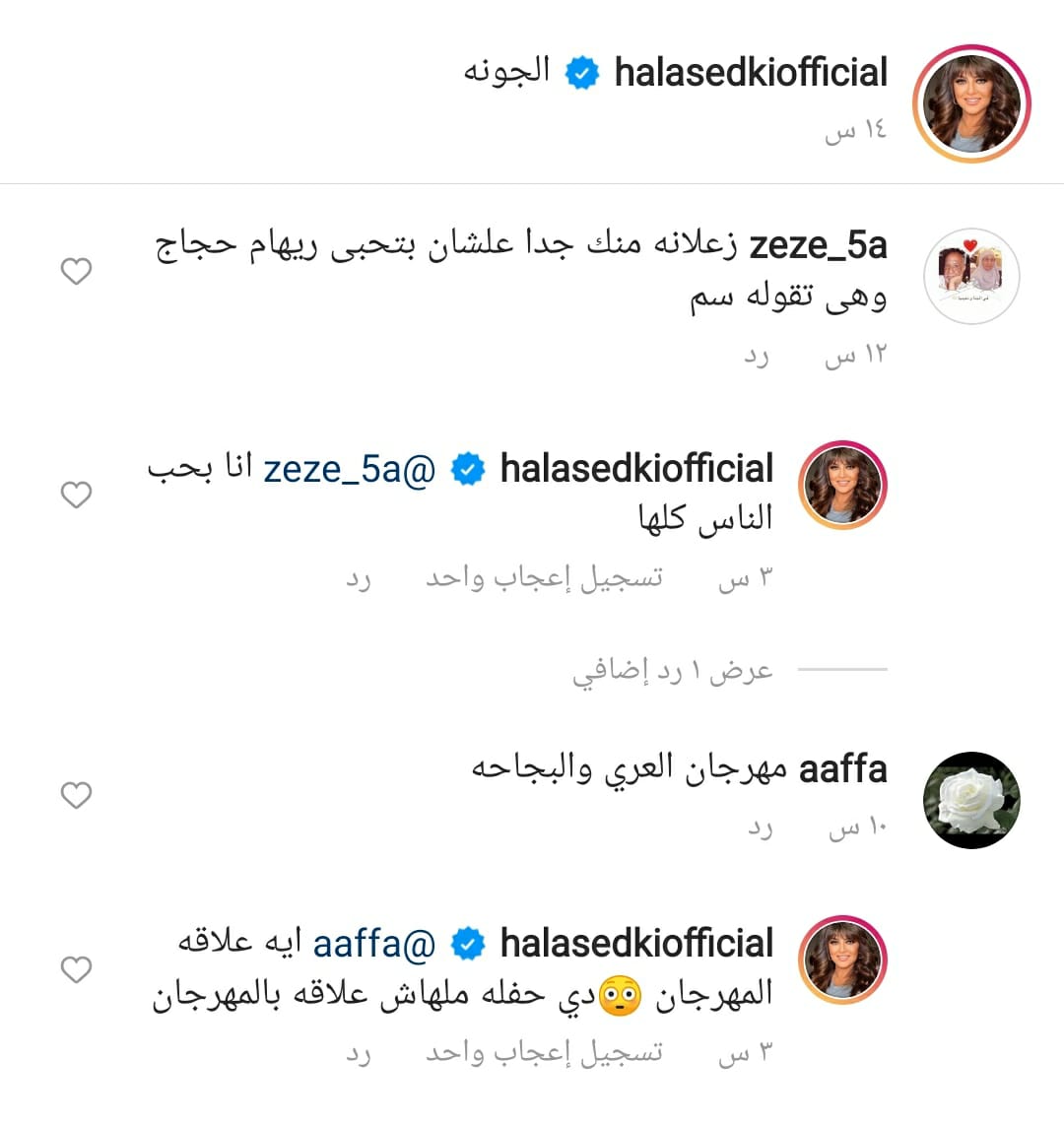 ردت الفنانة هالة صدقي، على صاحبة حساب على إنستجرام، وصفت حفلة مهرجان الجونة بـ العري والبجاحة.