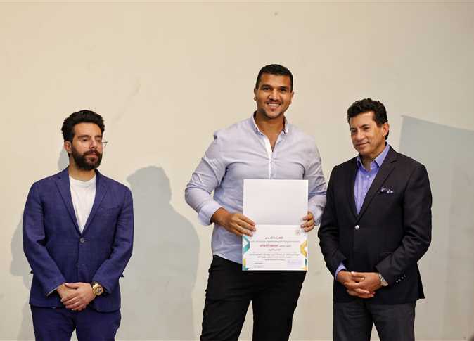 كرم الدكتور أشرف صبحي وزير الشباب والرياضة، محمود الخواص المصور الصحفي بجريدة المصري اليوم، بعد فوزه بالمركز الثالث في مُسابقة ستريت وورك أوت، التي نظمتها شعبة المصورين الصحفيين.