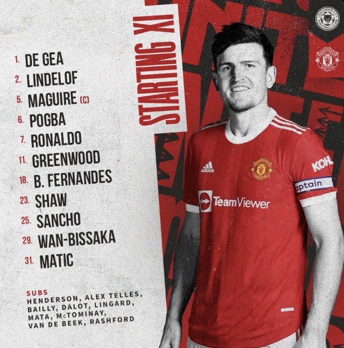 يأتي التشكيل الرسمي لفريق مانشستر يونايتد كما يلي: