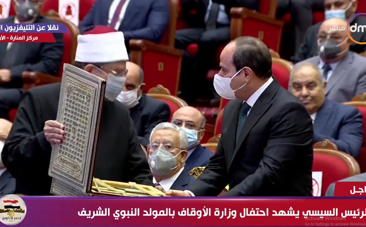 وزير الأوقاف يهدي الرئيس مصحفا خلال احتفالية المولد النبوي الشريف
