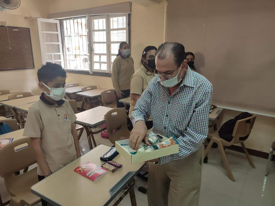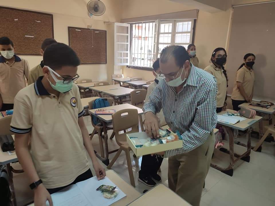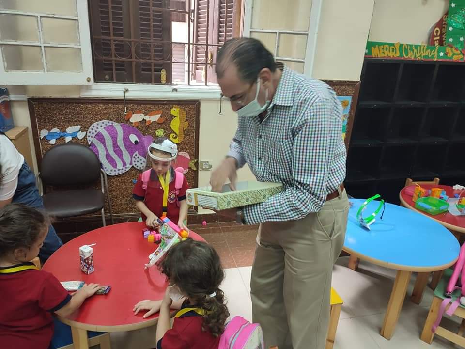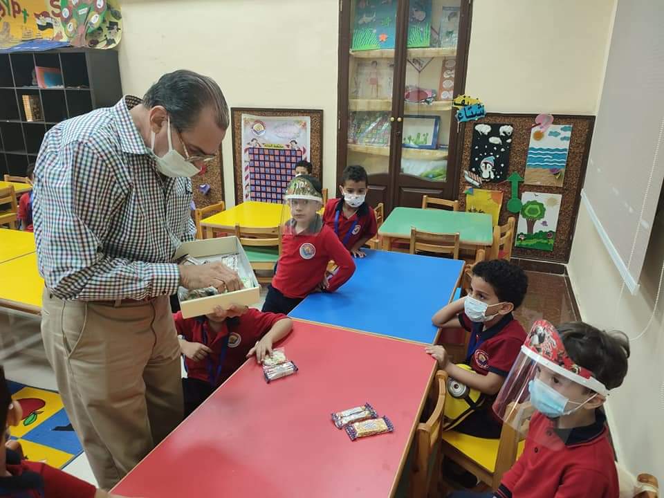 القاهرة 24 رصد في بث مباشر، موريس فريد مدير المدرسة اليونانية الحديثة ببورسعيد، التابعة لمدارس مطرانية الأقباط الأرثوذكس بالمحافظة، بتوزيع الحلوى علي طلاب المدرسة من المسلمين والأقباط.