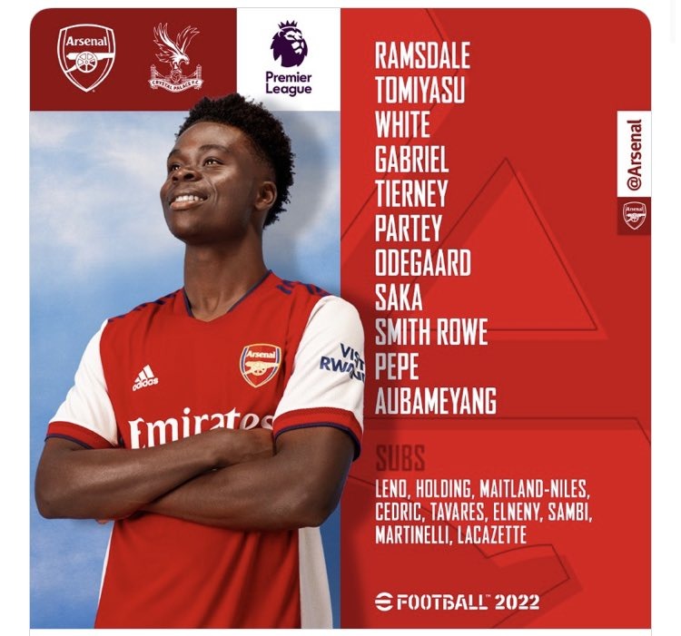 أعلن الإسباني ميكيل أرتيتا، مدرب فريق أرسنال الإنجليزي المحترف في صفوفه محمد النني لاعب وسط المنتخب الوطني الأول لكرة القدم، تشكيل فريقه الرسمي لمواجهة نظيره كريستال بالاس، ضمن منافسات الجولة الثامنة من مسابقة الدوري الإنجليزي الممتاز "بريميرليج".