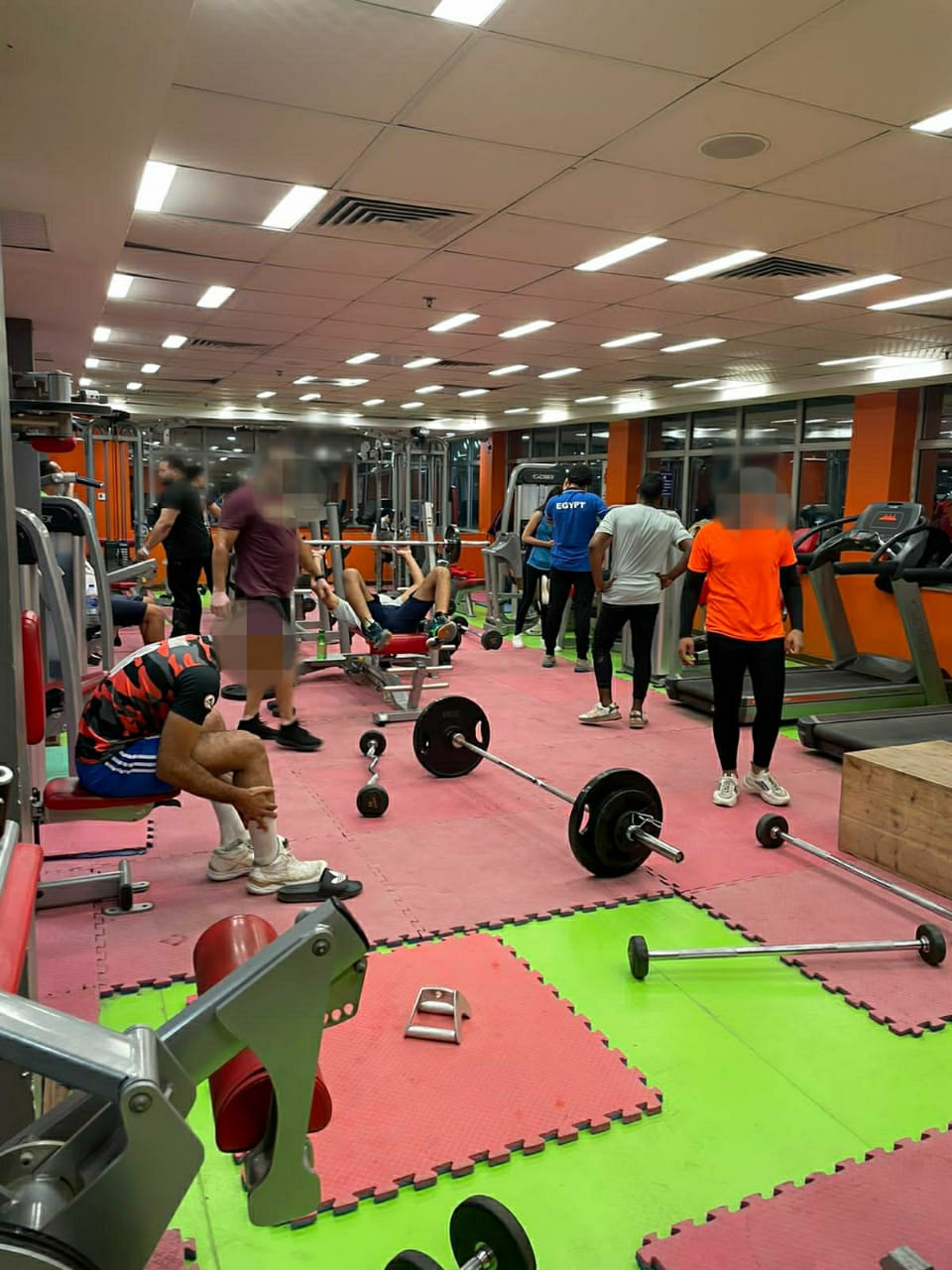 تعرض الصور التي تم التقاطها اليوم الاثنين، من داخل المركز عدد يزيد عن 35 متدربًا في صالة الحديد دون أي وسائل تهوية من نوافذ أو تكييفات أو غيرها من وسائل سلامة الصحة العامة، وذلك في مساحة صغيرة نسبيًا مع عدد المتدربين.
