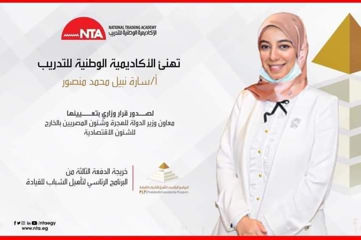 أصدرت السفيرة نبيلة مكرم، وزيرة الدولة للهجرة وشؤون المصريين بالخارج، قرارًا وزاريًا بتعيين سارة نبيل محمد منصور، معاونًا لوزير الدولة للهجرة وشؤون المصريين بالخارج للشئون الاقتصادية، وسلمى عبد الناصر محمود، معاونًا لوزير الدولة للهجرة وشؤون المصريين بالخارج للتعاون الدولي، وهما من خريجي الدفعة الثالثة للبرنامج الرئاسي لتأهيل الشباب للقيادة.