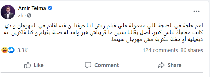 أمير طعيمة: ضجة فيلم ريش عرفتنا إن فيه أفلام بمهرجان الجونة.. وليست حفلة تنكرية