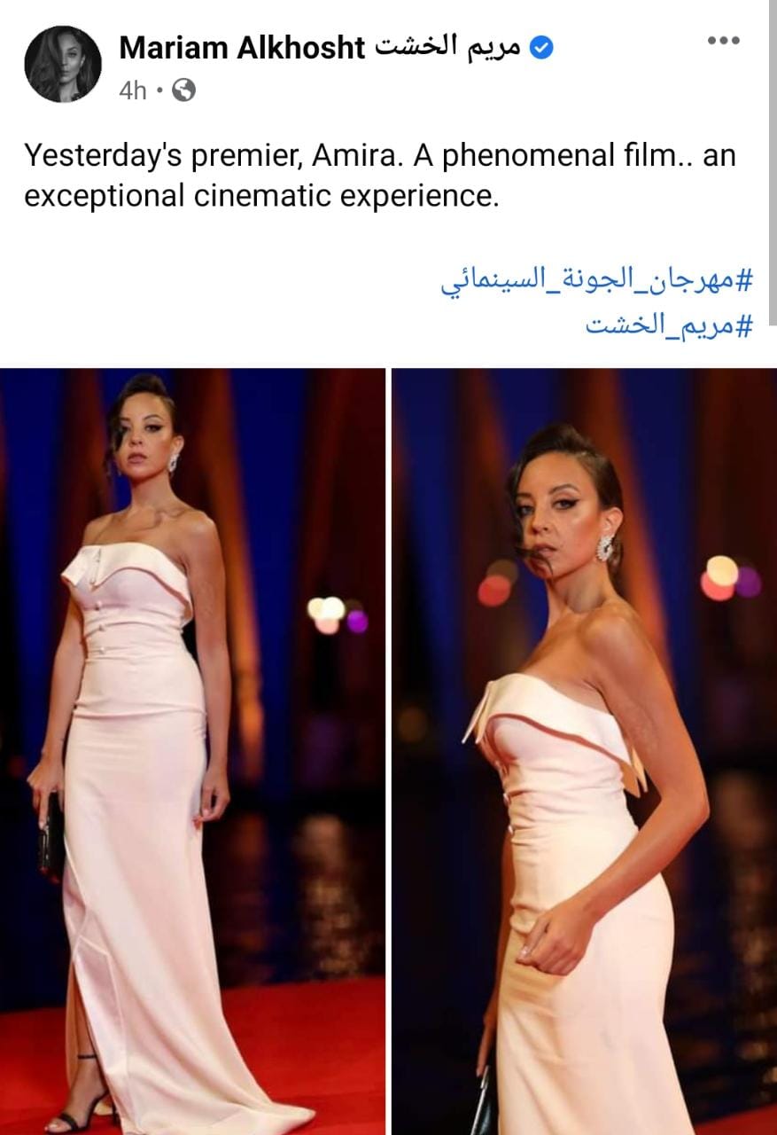 ونشرت الفنانة مريم الخشت صورًا لها في أثناء وجودها على الريد كاربت، من العرض الافتتاحي لـ فيلم أميرة في اليوم السادس لمهرجان الجونة السينمائي عبر صفحتها الرسمية على فيس بوك، وعلقت: فيلم أميرة استثنائي، وتجربة سينمائية استثنائية.