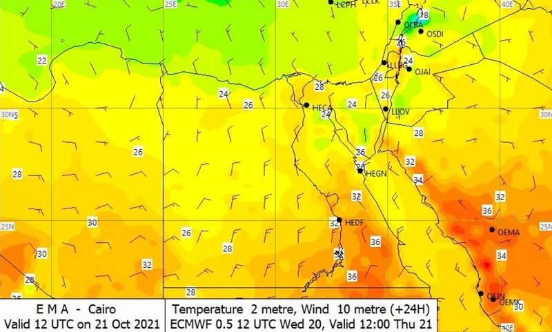 أعلنت الأرصاد الجوية، حالة الطقس اليوم وحتى يوم السبت المقبل والموافق 23 أكتوبر 2021 أي طقس إجازة نهاية الأسبوع، وأوضح خبراء الأرصاد أن الطقس خلال هذه الفترة سوف يكون خريفي مُعتدل على أغلب أنحاء جمهورية مصر العربية.