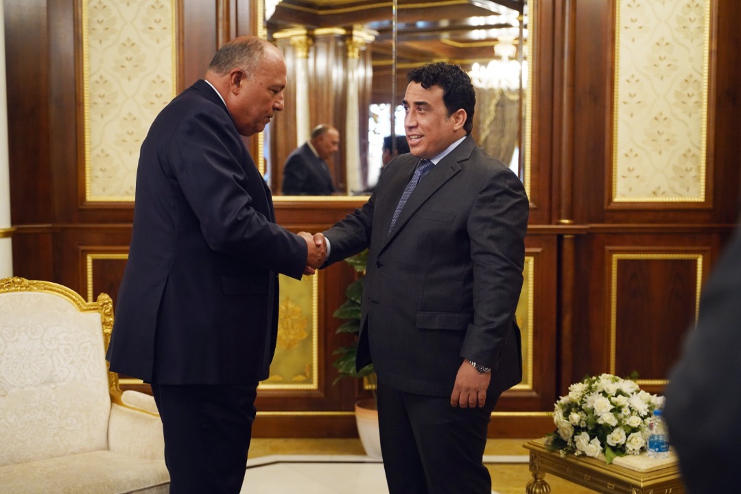 شكري يلتقي محمد المنفي على هامش مؤتمر استقرار ليبيا | صور