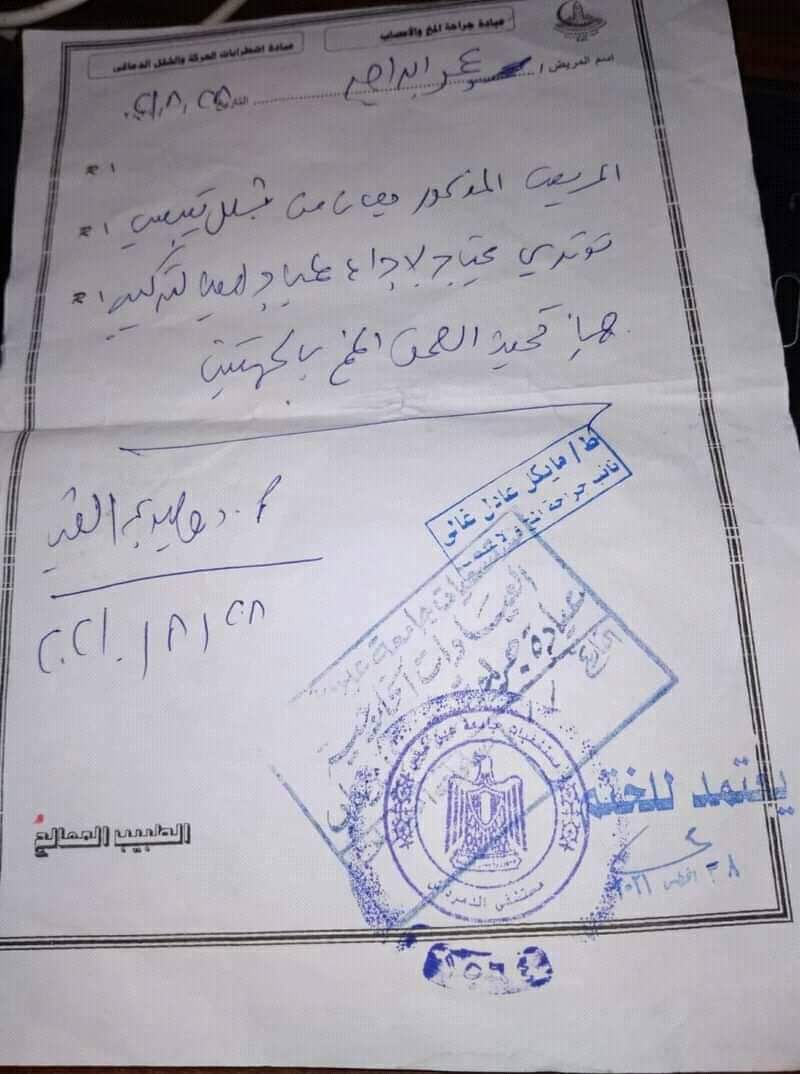 وأشار إبراهيم إلى أن سفره للعلاج بالخارج، رُفض أكثر من عدة مرات، على مدار السنوات الماضية، من المجالس الطبية المتخصصة، وقسم المخ والأعصاب بمستشفى الحضرة الجامعي بالإسكندرية، مواصلًا: وضعي الطبي لا يتحمل أكثر من ذلك، وأطالب بضرورة الاهتمام بي؛ حتى يتم تسهيل إجراءات سفري وعلاجي خارج مصر.