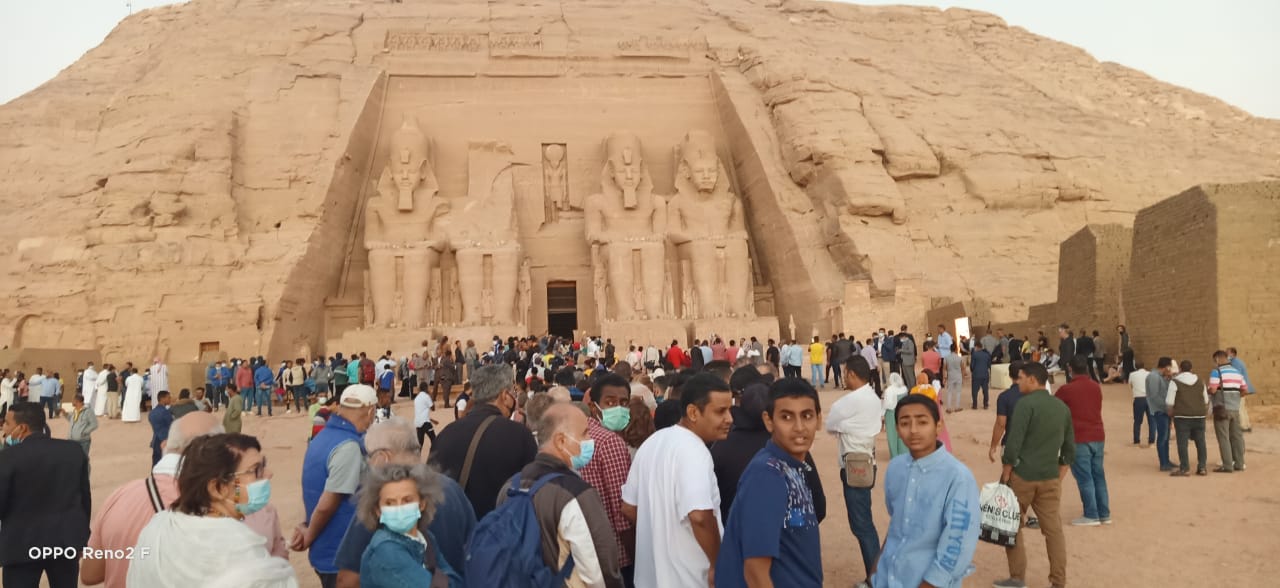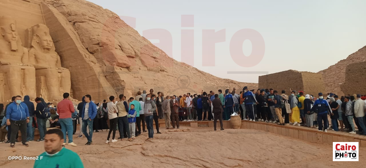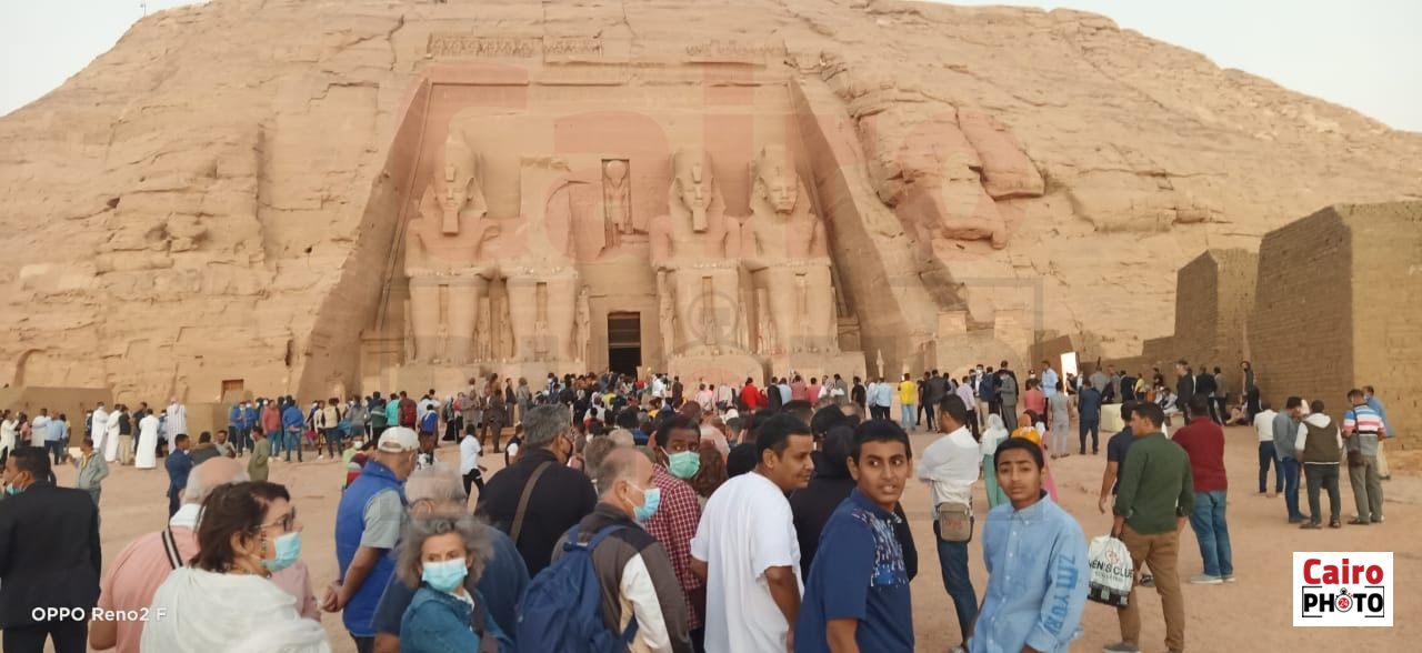استقبل معبد أبوسمبل، الآلاف من الزائرين لمشاهدة ظاهرة تعامد الشمس علي وجه رمسيس الثاني بمعبد ابو سمبل، حيث تعامدت الشمس في تمام الساعة 5.53 دقيقة.
