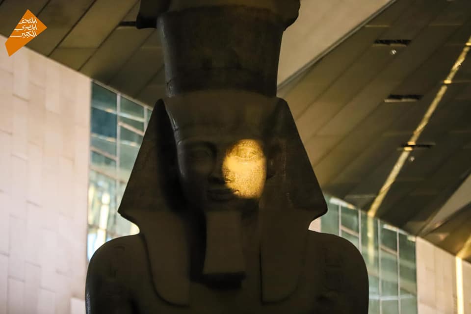 ذكر المتحف المصري الكبير، في بيان أنه بعد أكثر من ثلاثة آلاف عام من بناء الملك رمسيس الثاني لمعبده الفريد بأبي سمبل، والذي تتعامد فيه أشعة الشمس على وجه الملك يوميّ 22 أكتوبر و22 فبراير من كل عام، نجح أبناء المتحف المصري الكبير في تحقيق تعامد أشعة شروق الشمس على وجه تمثال الملك رمسيس الثاني، داخل مقره الأخير ببهو المتحف المصري الكبير.