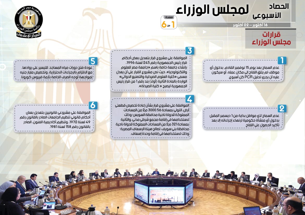 أبرزها قرار عودة فتح دورات مياه المساجد.. ننشر الحصاد الأسبوعي لمجلس الوزراء | إنفوجراف