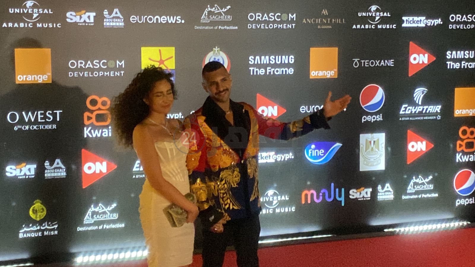 حسن أبو الروس ينفي طلاقه ويظهر مع زوجته على ريد كاربت ختام مهرجان الجونة