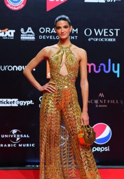 كما تألقت الفنانة تارا عماد خلال حفل ختام مهرجان الجونة، وظهرت مرتدية جامبسوت باللون الذهبي.