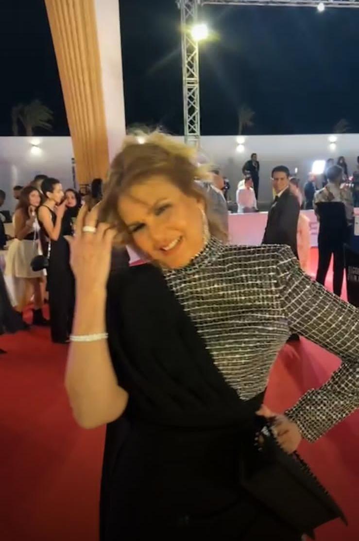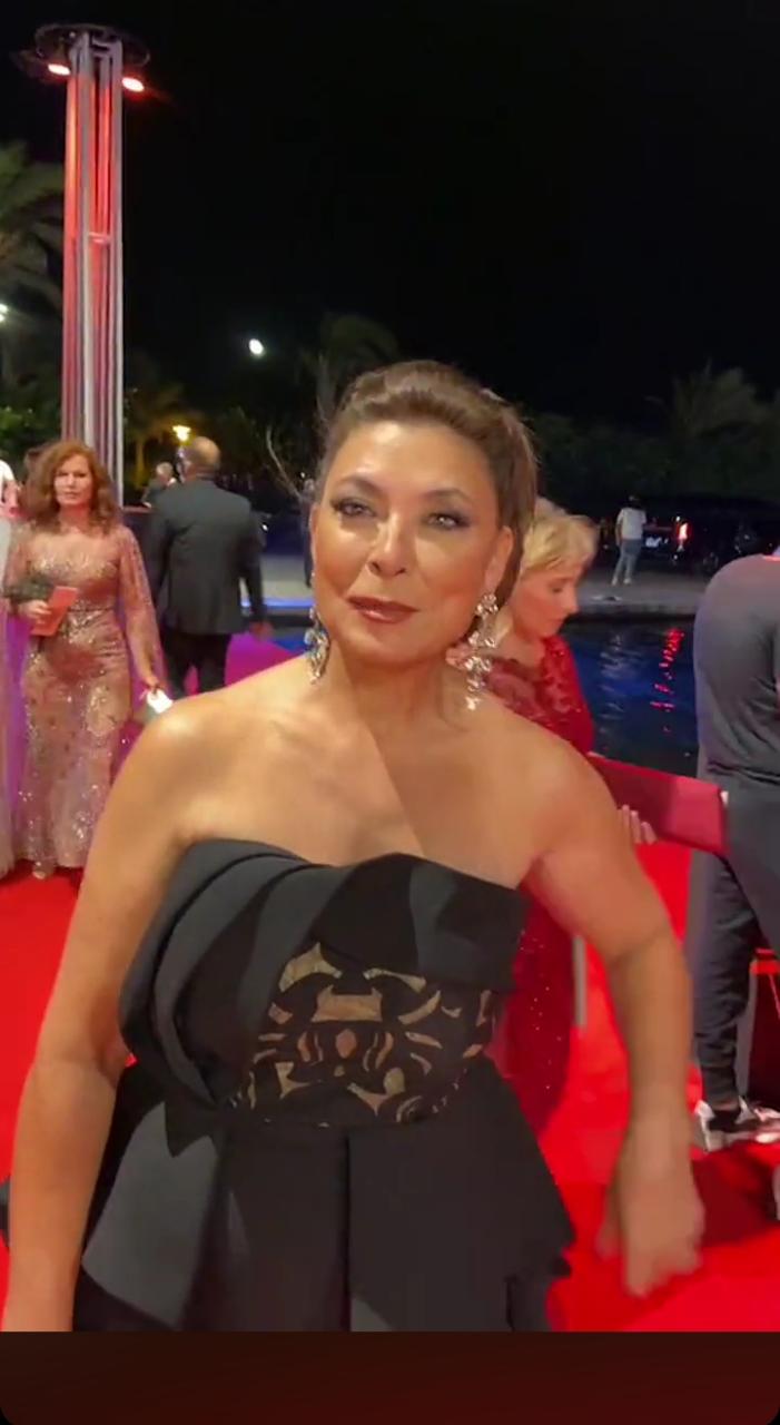 وظهرت الفنانة يسرا على كاربت حفل ختام مهرجان الجونة مرتدية فستانًا أسود اللون، مع اللون السلفر، كما اعتمدت الأكسسوارات الأنيقة، حيث ارتدت أسورة، وحلق وخاتم، وصففت شعرها للخلف مما زاد من إطلالتها جمالًا.