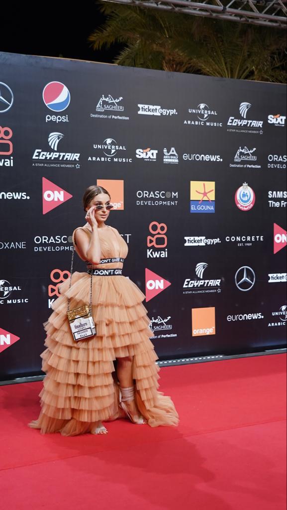 كما ظهرت الراقصة أنستازيا بإطلالة غريبة على ريد كاربت حفل ختام المهرجان، إذ ارتدت فستانًا باللون البرتقالي متميز بقصة الكرانيش، والغريب في إطلالتها ارتدئها نظارة شمس وحقيبة يد ملفته، واعتمدت تسريحة شعر ذيل حصان مع مكياج هادي بالوانات النود.
