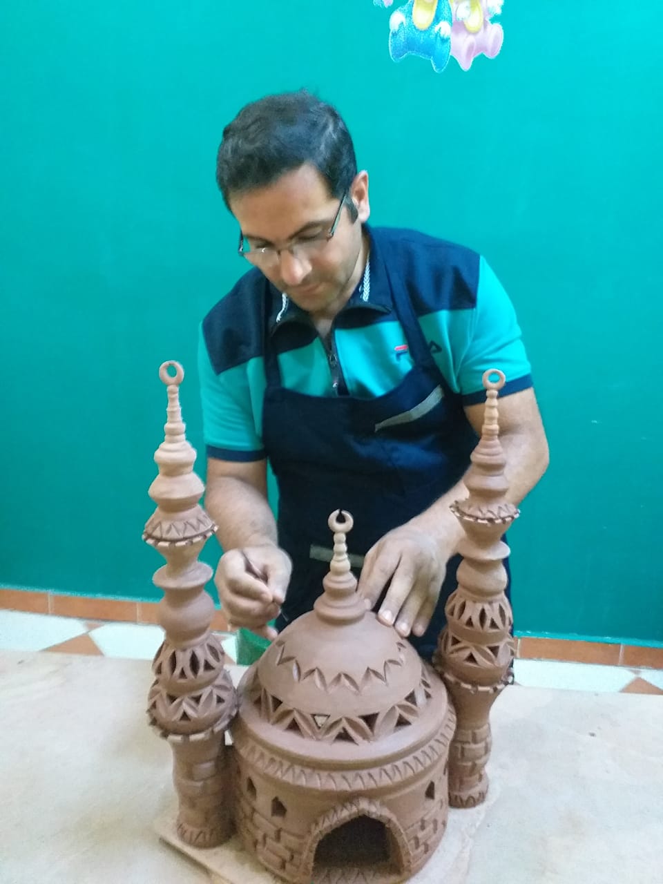 وتابع أن ذلك مكنه من تحضير بعض الدراسات في الخزف والقيام، بتعليم أي شخص يقابله ويجد فيه حب التعلم لتلك المهارة، ويحثه على الصدق فيها وتطويرها والإبداع.