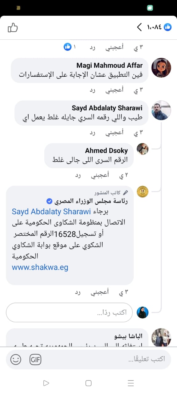 وأشارت رئاسة مجلس الوزراء، إلى أنه في حالة إرسال رقم سري خاطئ، يُرجى الاتصال بمنظمة الشكاوى الحكومية الموحدة على 16528.