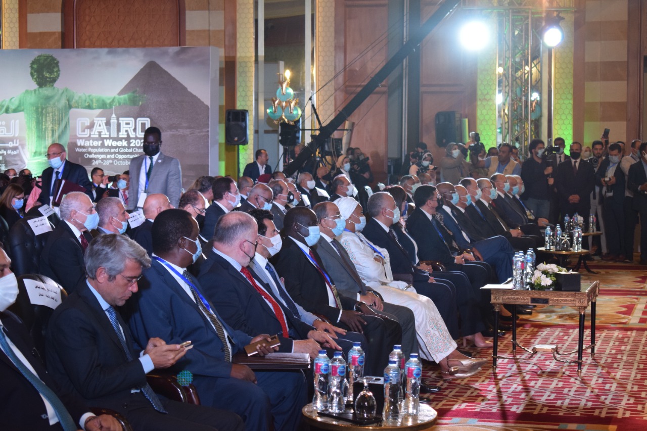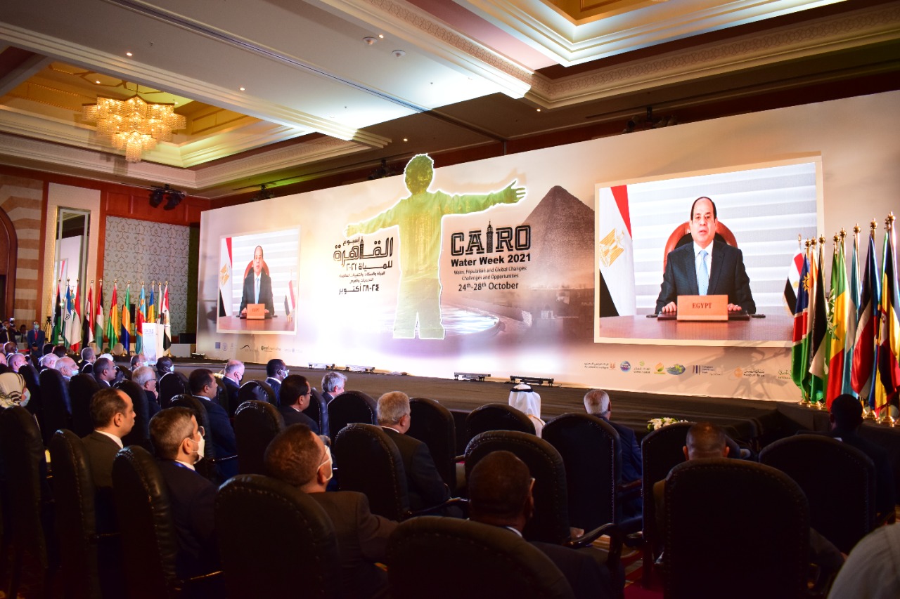 انطلقت منذ قليل، فعاليات أسبوع القاهرة الرابع للمياه تحت شعار المياه والسكان والتغيرات العالمية، التحديات والفرص، الذي يقام تحت رعاية الرئيس عبد الفتاح السيسي، رئيس الجمهورية، وبحضور عدد كبير من الوزراء والوفود الرسمية وكبار المسئولين في قطاع المياه والعلماء والمنظمات والمعاهد الدولية ومنظمات المجتمع المدني والسيدات والمزارعين والقانونيين من مختلف دول العالم، بحضور 1000 مشارك فعلي، و800 مشارك افتراضي عن بعد، وحضور 20 وفدا وزاريا ومشاركة 44 وفدا وزاريا بشكل افتراضي.