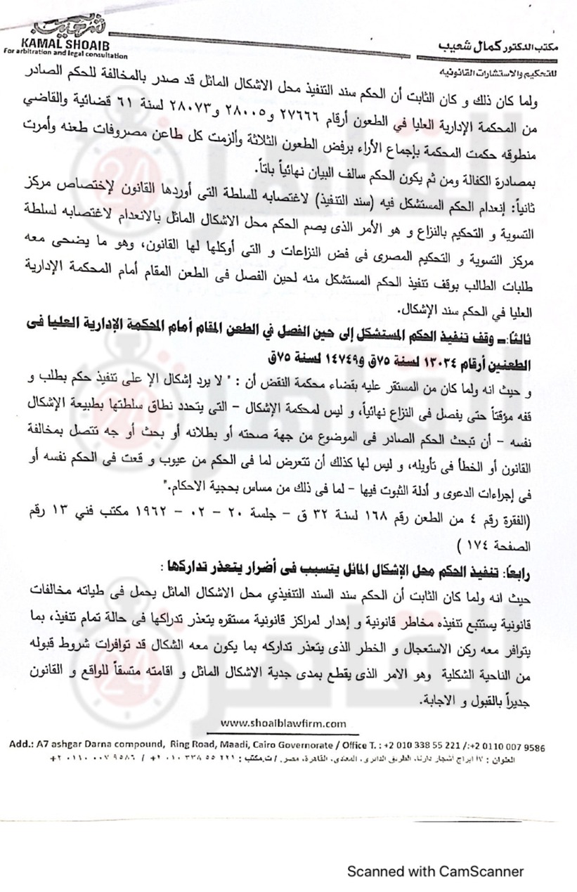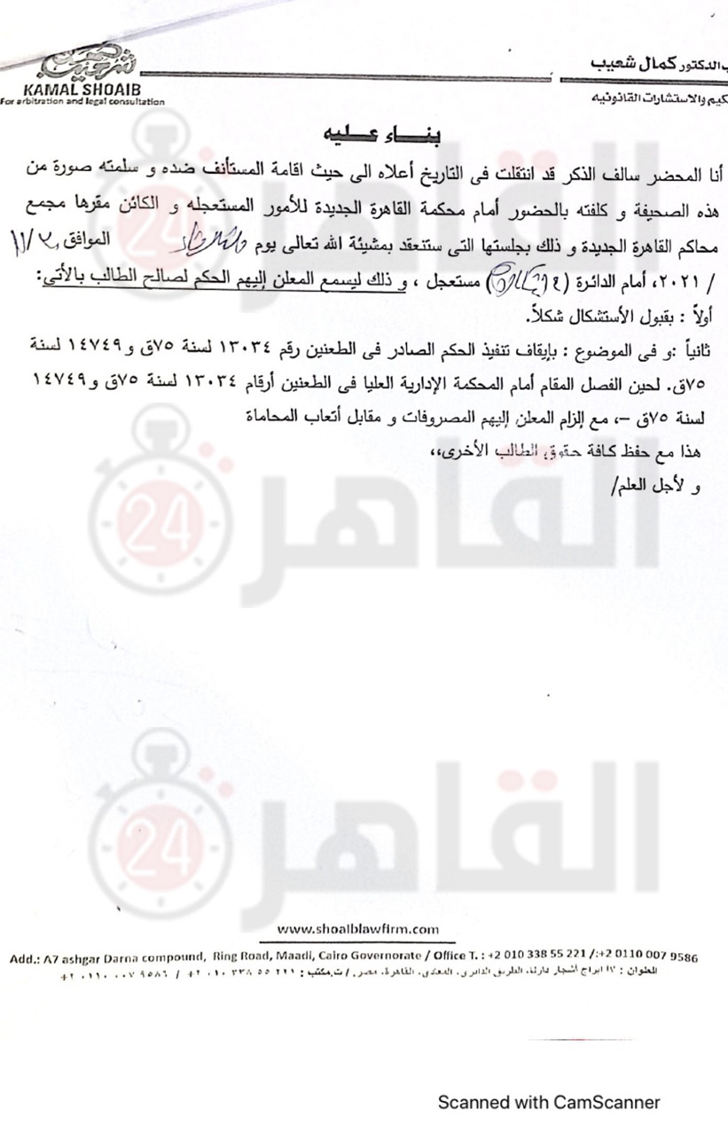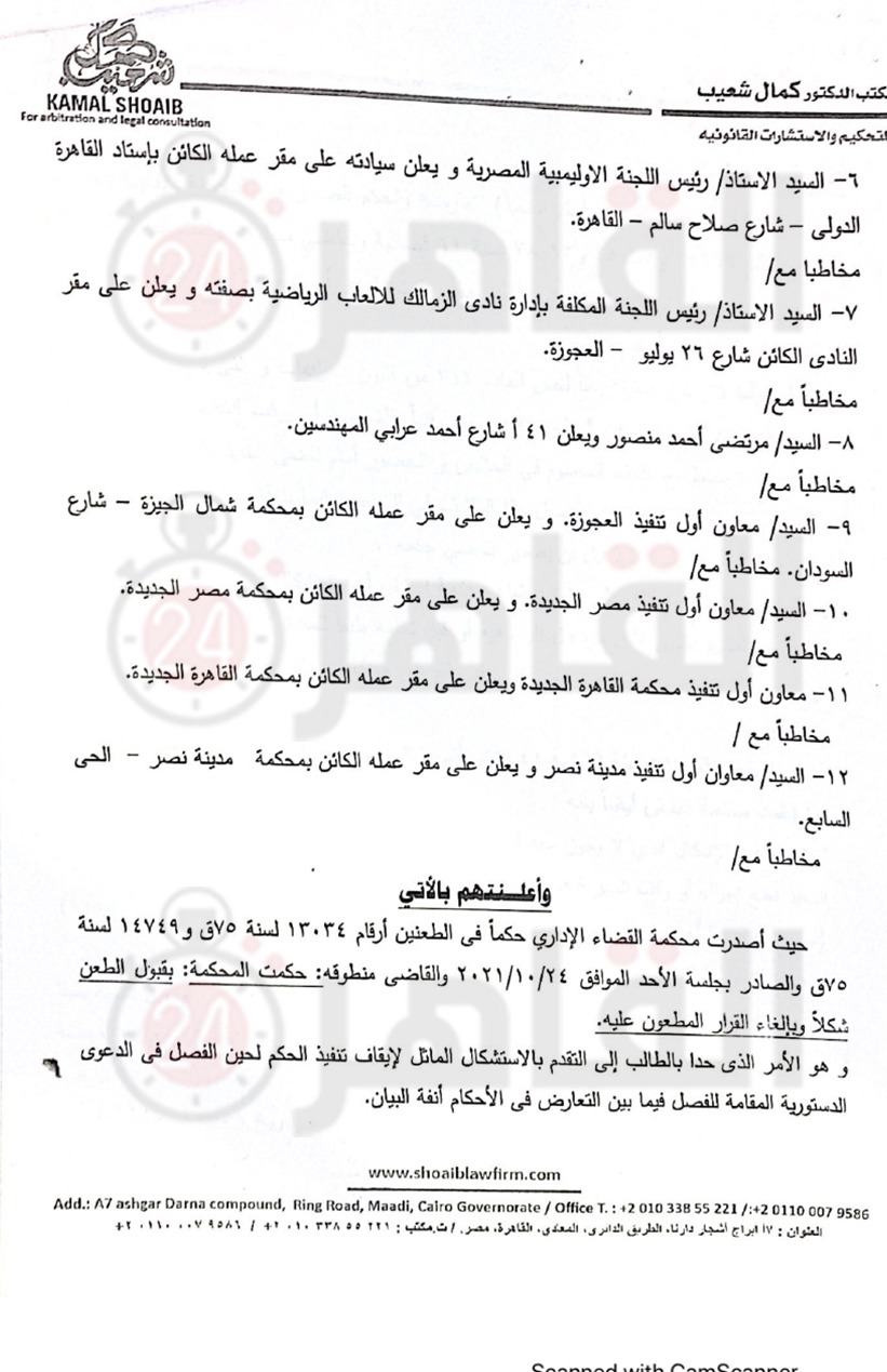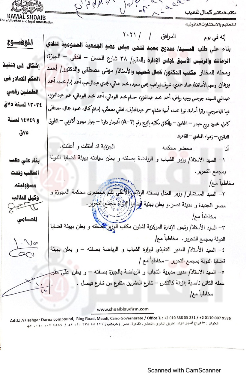 حصل القاهرة 24 على نص الاستشكال الذي قدمه كمال شعيب المحامي، بالنيابة عن ممدوح عباس رئيس الزمالك السابق وهاني شكري عضو المجلس السابق، ضد قرار محكمة القضاء الإداري بعودة مجلس مرتضى منصور، لاستكمال مدة مجلسه.