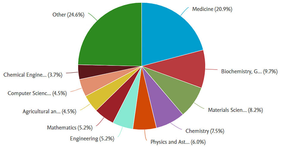 جاء ذلك بعدما قام عدد من أعضاء هيئة تدريس الجامعة أمس بنشر 70 بحثا متميزًا ضمن المجلات المرفوعة على منصة سكوبس تميزت فيها الأبحاث بوجود تعاون دولى واضح كانت السعودية على رأس تلك الدول المتعاونة بعدد 16 بحث، وجاءت المملكة المتحدة في المرتبة الثانية بعدد 8 أبحاث، والمرتبة الثالثة بواقع 5 أبحاث فكانت من نصيب إيطاليا والولايات المتحدة الأمريكية، أما كندا والصين وأسبانيا فقد جاءوا بالمرتبة الرابعة بواقع 3 أبحاث لكل منهم، وغيرهم من دول العالم.