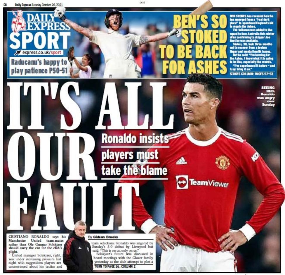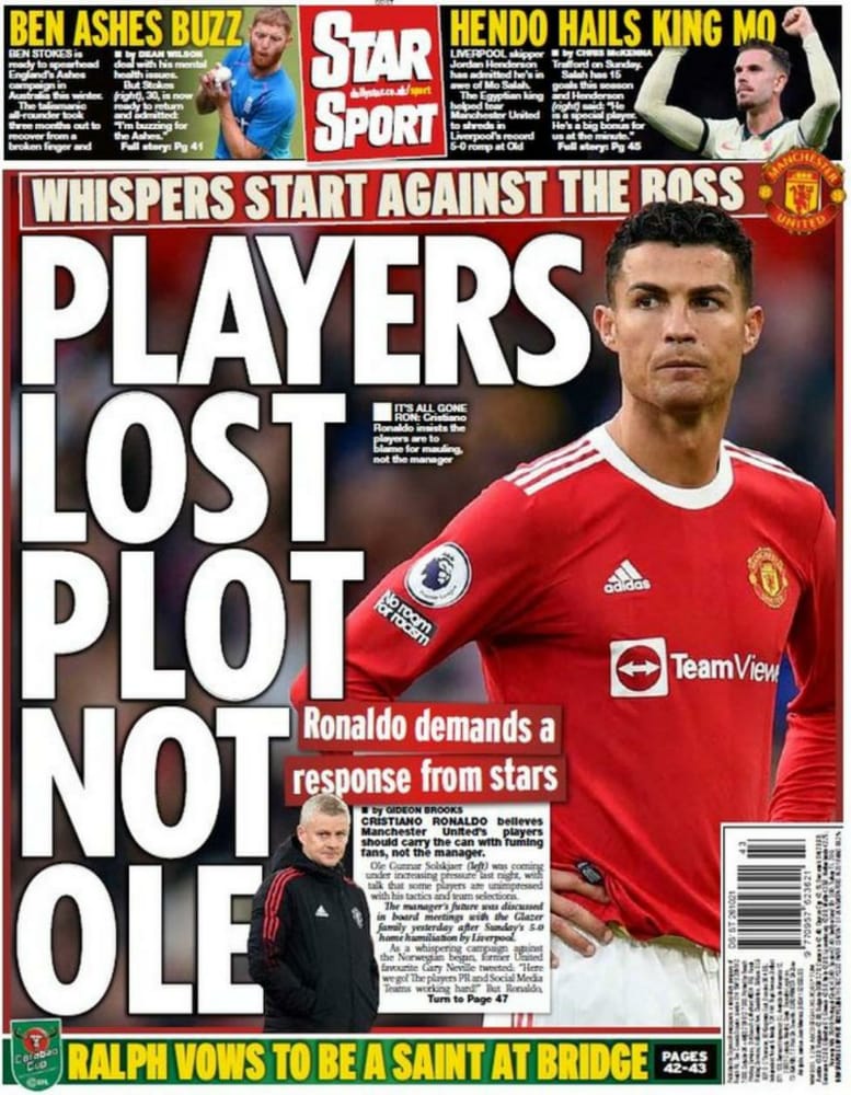 تصدر العنوان: رونالدو يلوم لاعبي مانشستر يونايتد.. هذا خطأ منا جميعًا.