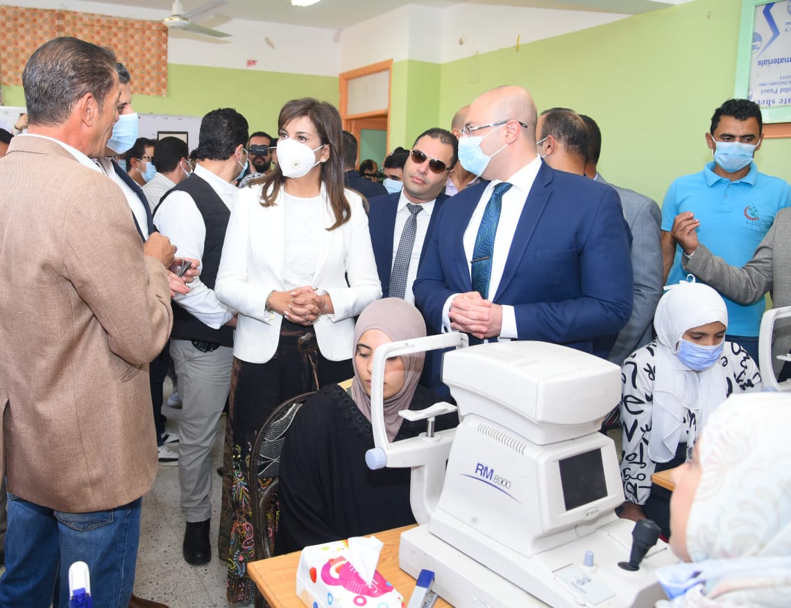 وزيرة الهجرة ومحافظ بني سويف يتفقدان القافلة الطبية في قرية الحرجة