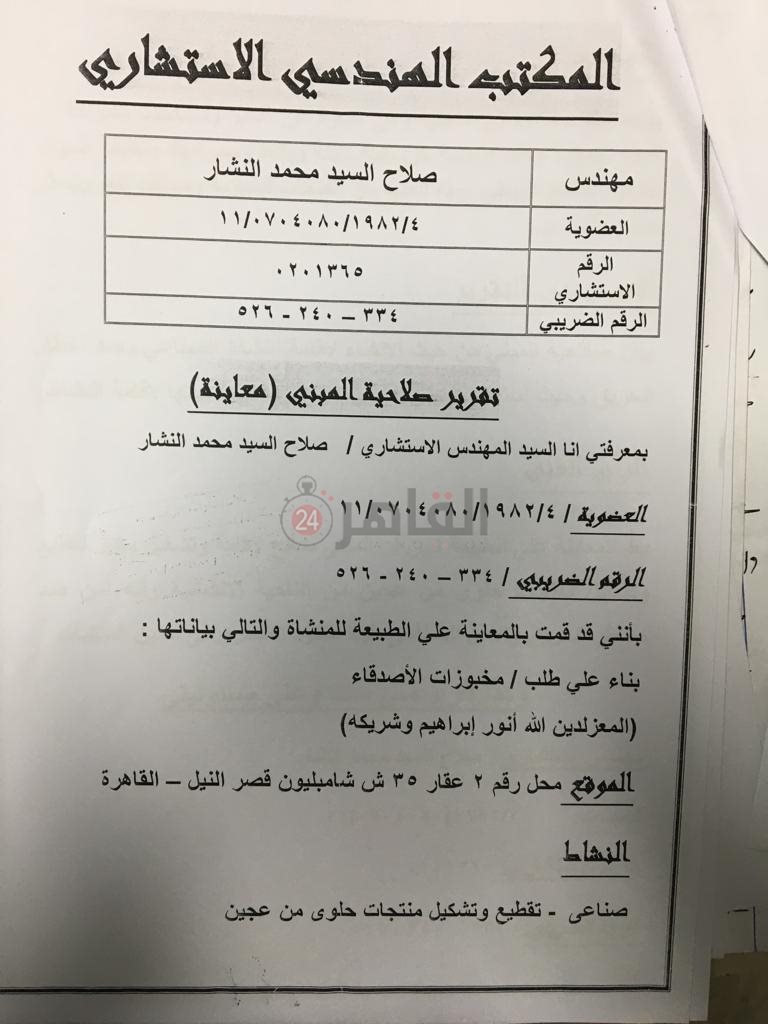 مدخنة مخبز تهدد عقار يوسف شاهين وقاطنيه في وسط البلد