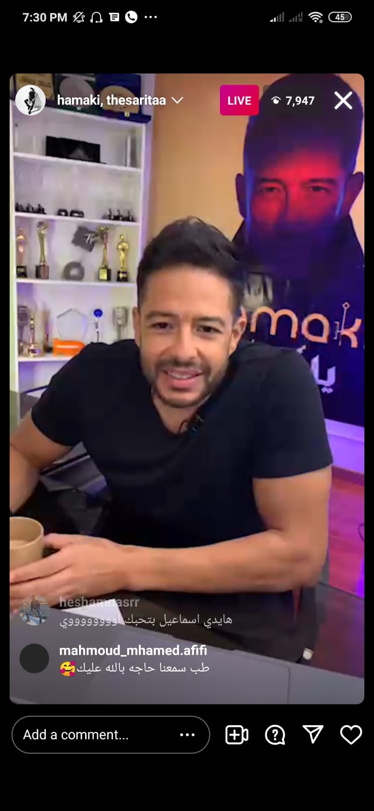 وأجاب حماقي خلال البث المباشر على أسئلة الجمهور، كما استضاف معه خلال اللايف عدة شخصيات من جمهوره للتحدث عن آرائهم في الألبوم وإعطائهم بوستر مدون عليه الإمضاء الإلكتروني الخاص بحماقي على بوستر الألبوم.