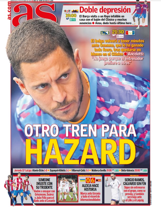 عنونت صحيفة آس الإسبانية في غلافها بالعنوان، فرصة أخرى لهازارد، وذلك في إشارة لموقفه الأخير مع المدرب كارلو أنشيلوتي الذي يرغب في رؤية منه المزيد لمنحه فرص مشاركة.