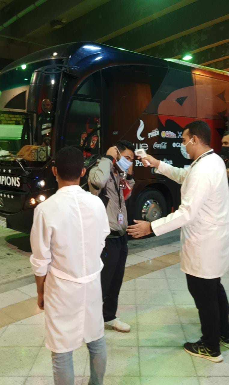 وفي السياق ذاته، وصل فريق الكرة الأول بالنادي الأهلي، إلى ملعب المباراة، استعدادًا لخوض المباراة وشهد وصول الفريقين لملعب المباراة، إجراءات طبية مشددة من جانب اللجنة الطبية المسؤولية عن المباراة.
