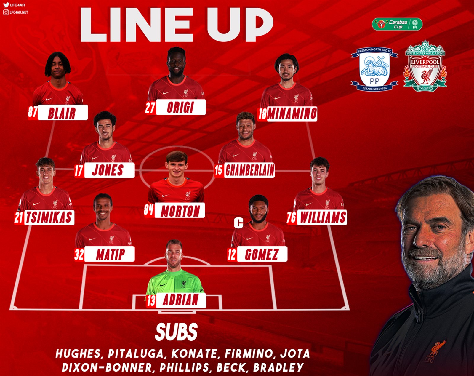 وجاء تشكيل فريق ليفربول لمباراة بريستون كالتالي: -