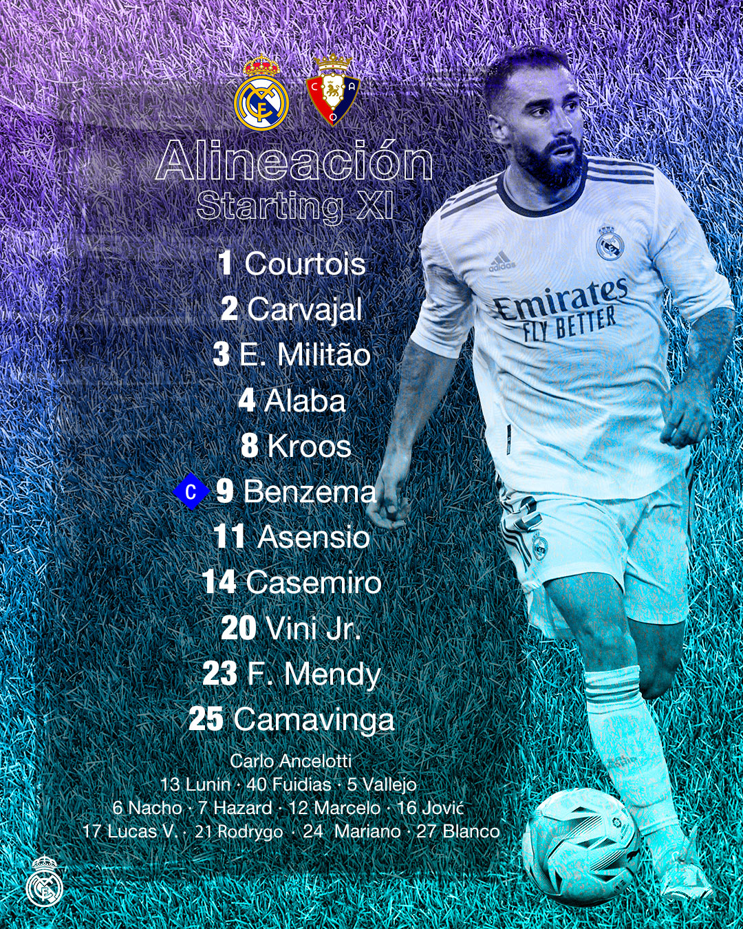 وجاء تشكيل ريال مدريد لمواجهة أوساسونا كالتالي: -